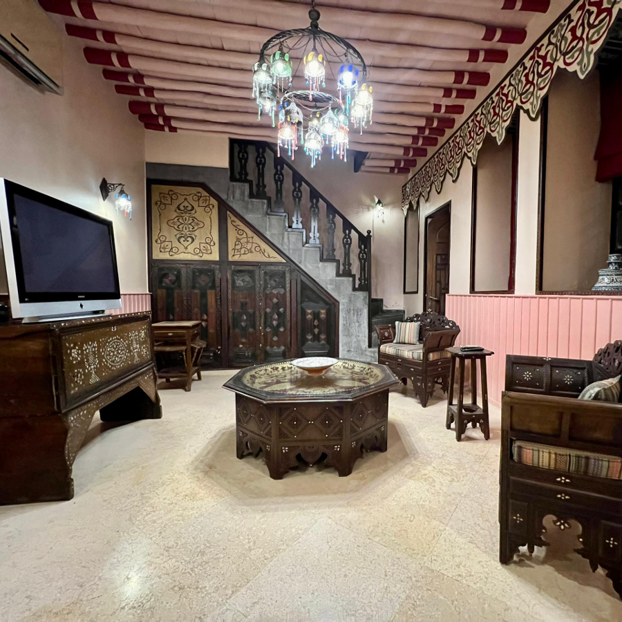 Located in the Qaimariyya area next to Al-Narjis Palace Restaurant, Damascene Arabic House combines modern luxury with the traditional charm of Damascus. The hotel features elegant rooms on the second floor with shared balconies called "Terraces," overlooking a traditional floor seating area known as "Ard Al-Diyar," offering guests an unforgettable authentic Damascene experience. This hotel is the perfect choice for travelers seeking a luxurious stay with a touch of local heritage, close to the city’s main attractions and traditional markets.